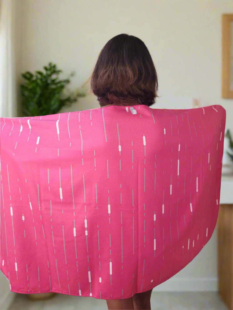 The waffle weave grabs water fast and gets you dry in seconds. Like a real towel… but smarter.