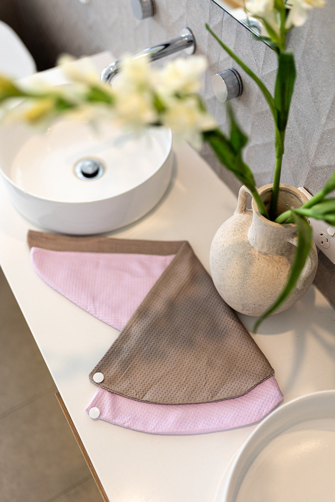 HANDS FREE DRYING FOR HEALTHIER HAIR – Our unique smooth, silky soft & super absorbent microfibre dries your hair 50% faster and more gently than conventional cotton terry towels or the harmful heat of blow dryers
