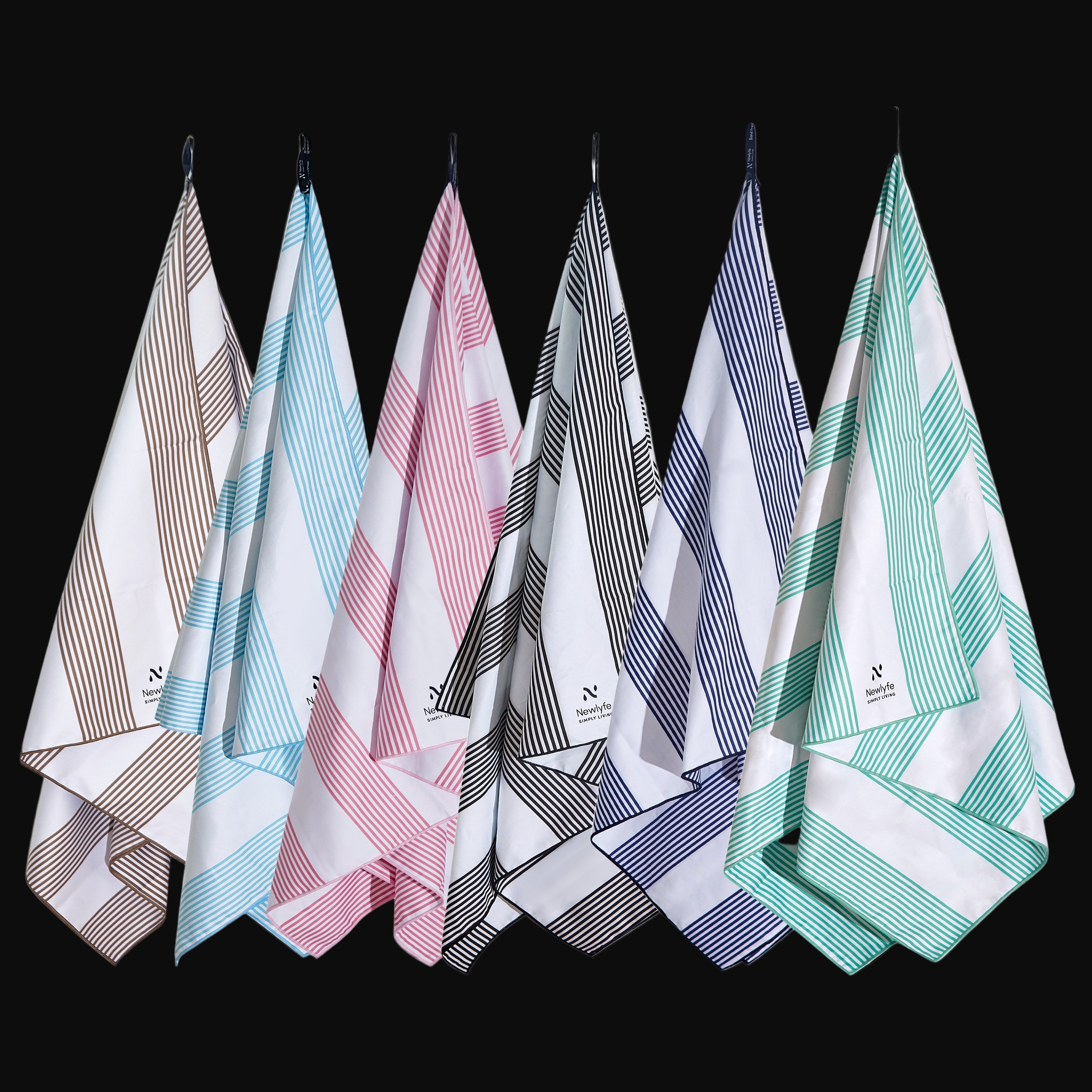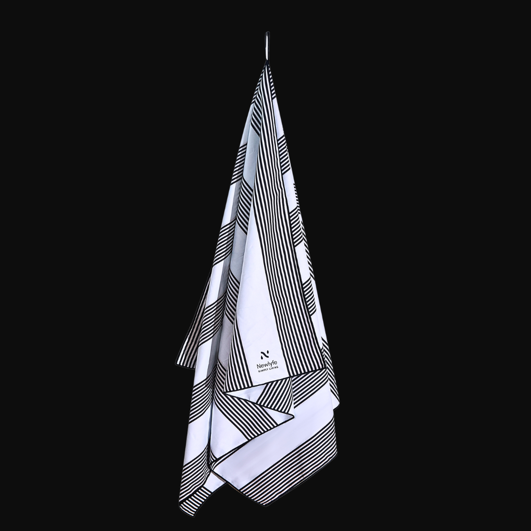 No more heavy, bulky, sandy beach towels that take forever to dry! Newlyfe Signature Beach Towels are quick dry, silky soft, huge rolled out yet fold down to the size of a water bottle and weigh just 330grams, so they’re easy to pack and carry! Hang them anywhere with the handy snap lock hanging loop, ideal for the beach, pool, caravan, camping and more!