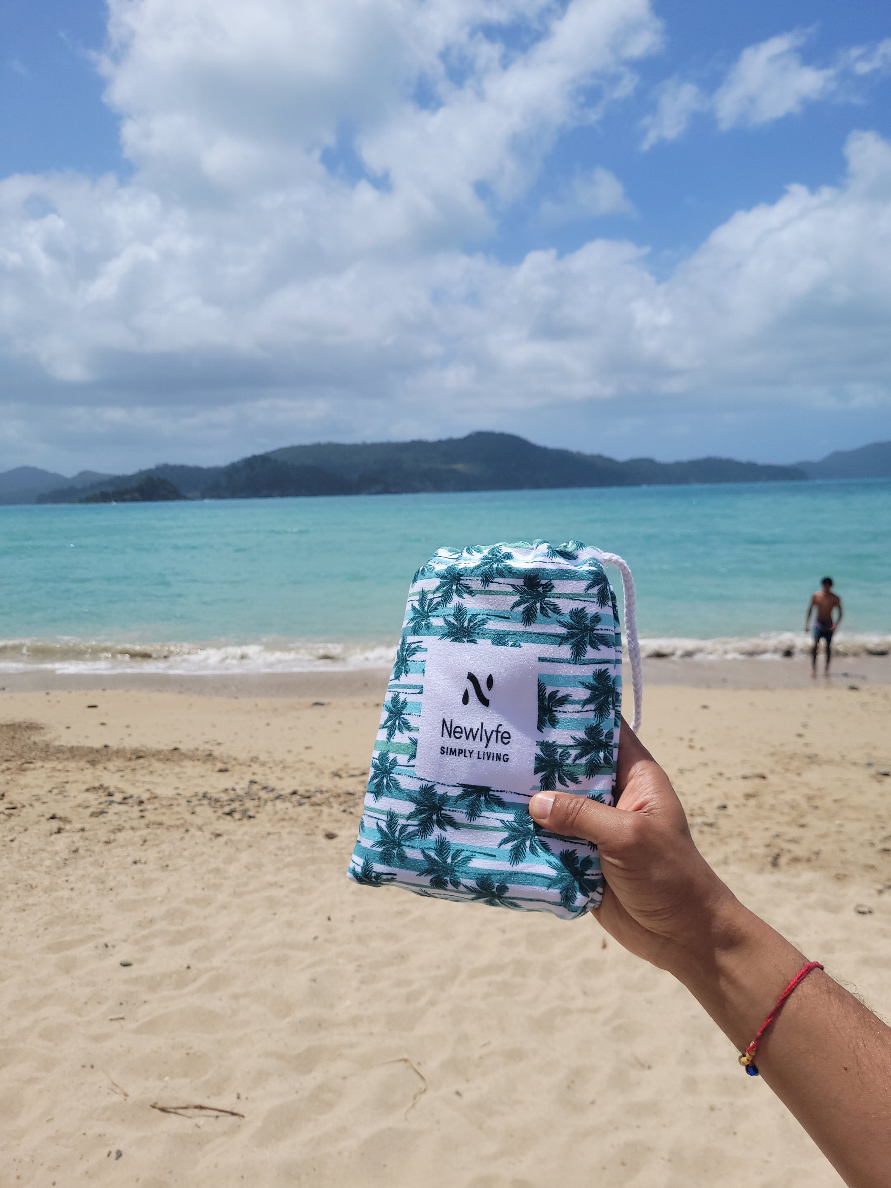 No more heavy, bulky, sandy beach towels that take forever to dry! Newlyfe Sand Free Microfiber Beach Towels are quick dry, silky soft, huge rolled out yet fold down to the size of a water bottle and weigh just 330grams, so they’re easy to pack and carry! Hang them anywhere with the handy snap lock hanging loop, ideal for the beach, pool, caravan, camping and more! Store and carry your keys, phone and sunnies in the bonus compact carry bag!
