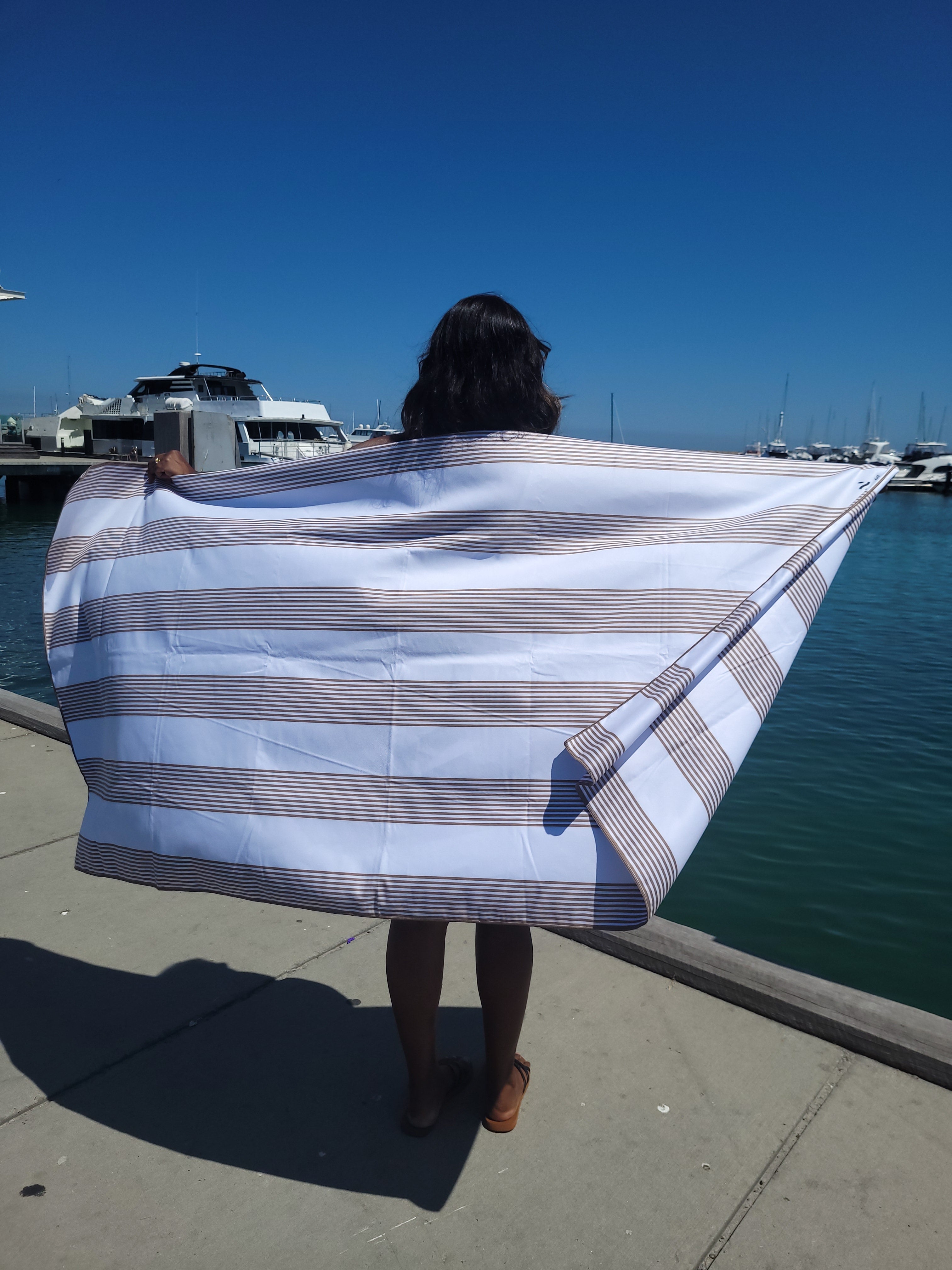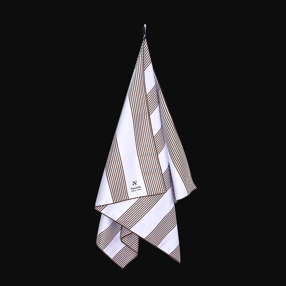 The Signature Collection takes everything you love about Newlyfe towels, sand-free, quick-dry, compact, lightweight and gives it a sophisticated twist. The Piha Brown print blends Newlyfe performance with a refined nautical look.